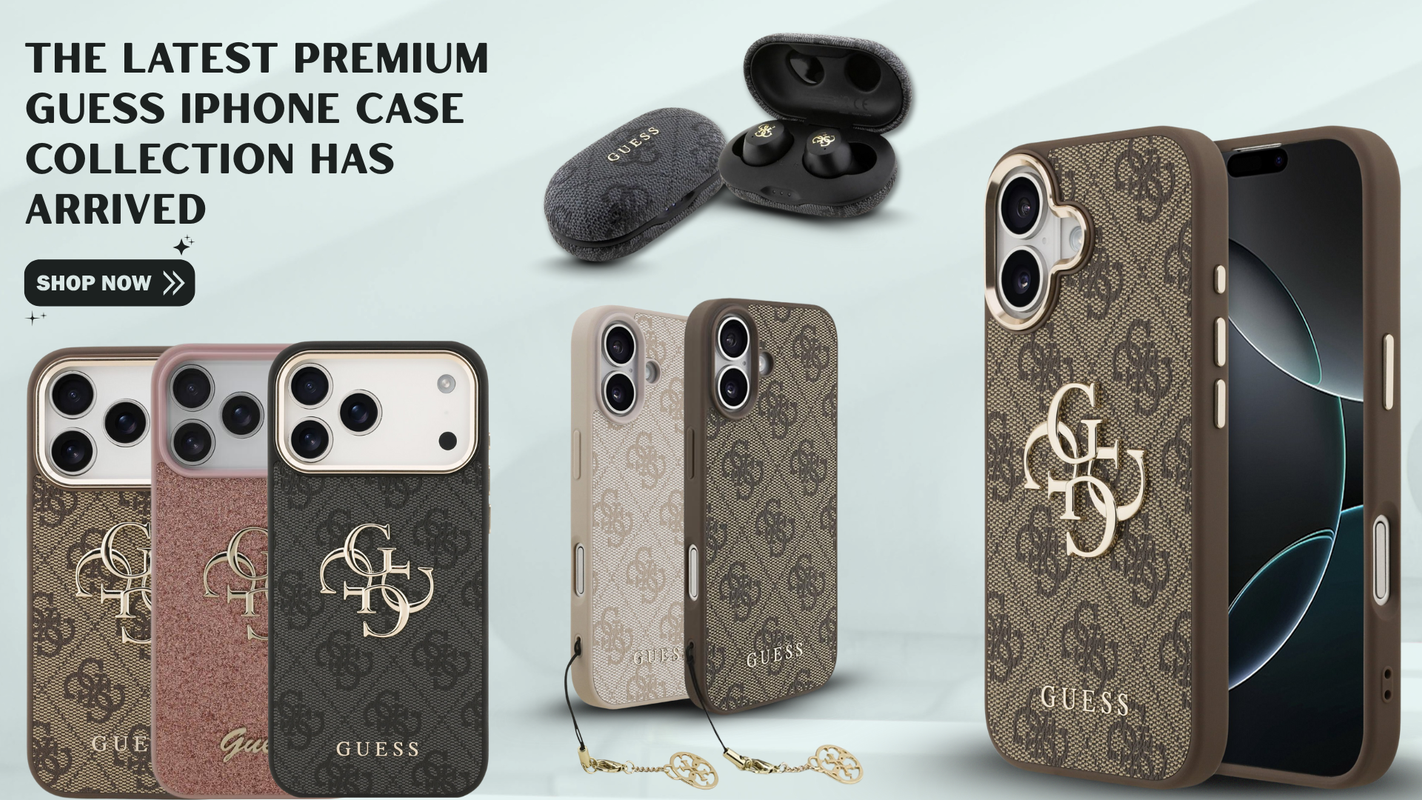 Premium Guess Branding: Glamorous look with metallic Guess logo emblem