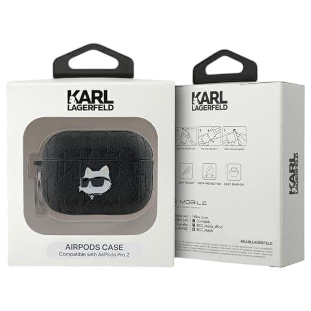 Karl Lagerfeld Monogram Choupette Head Case for AirPods Pro 2 Black - KLAP2PGCHPK