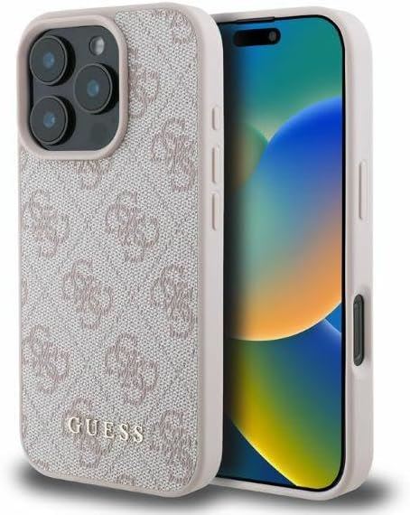 - Guess Case for iPhone 16 Pro 6.3 Inch Pink Hard Case 4G Classic
