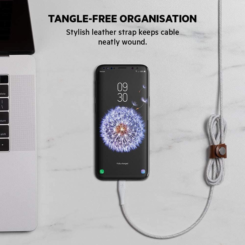 It’s not just for looks, the stylish leather accent helps keep your cable organized when not in use. No more messy cables at your desk or reaching into your bag to find a tangled cable. Just wrap and snap.