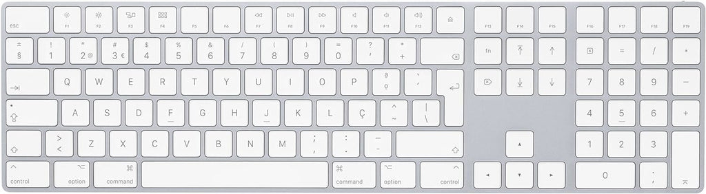 - Apple Magic Keyboard with Numeric Keypad: Bluetooth, rechargeable. Works with Mac, iPad or iPhone; Portuguese, silver