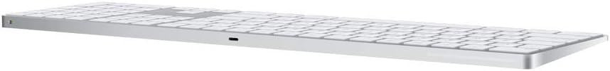 Magic Keyboard with Numeric Keypad features an extended layout, with document navigation controls for quick scrolling and full-size arrow keys for gaming. A scissor mechanism beneath each key allows for increased stability, while optimized key travel and a low profile provide a comfortable and precise typing experience. The numeric keypad is also great for spreadsheets and finance applications. The built-in, rechargeable battery is incredibly long-lasting, powering your keyboard for about a month or more between charges.