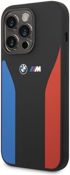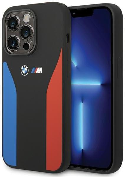 - BMW Case for iPhone 15 Pro Max Black Silicone Blue & Red Stripes M Collection