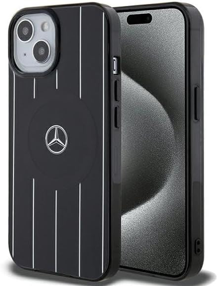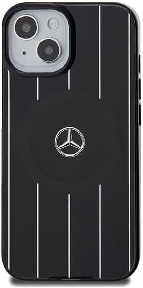 - Mercedes Case for iPhone 15 6.1 Inch Black Hard Case Double Layer Crossed Lines