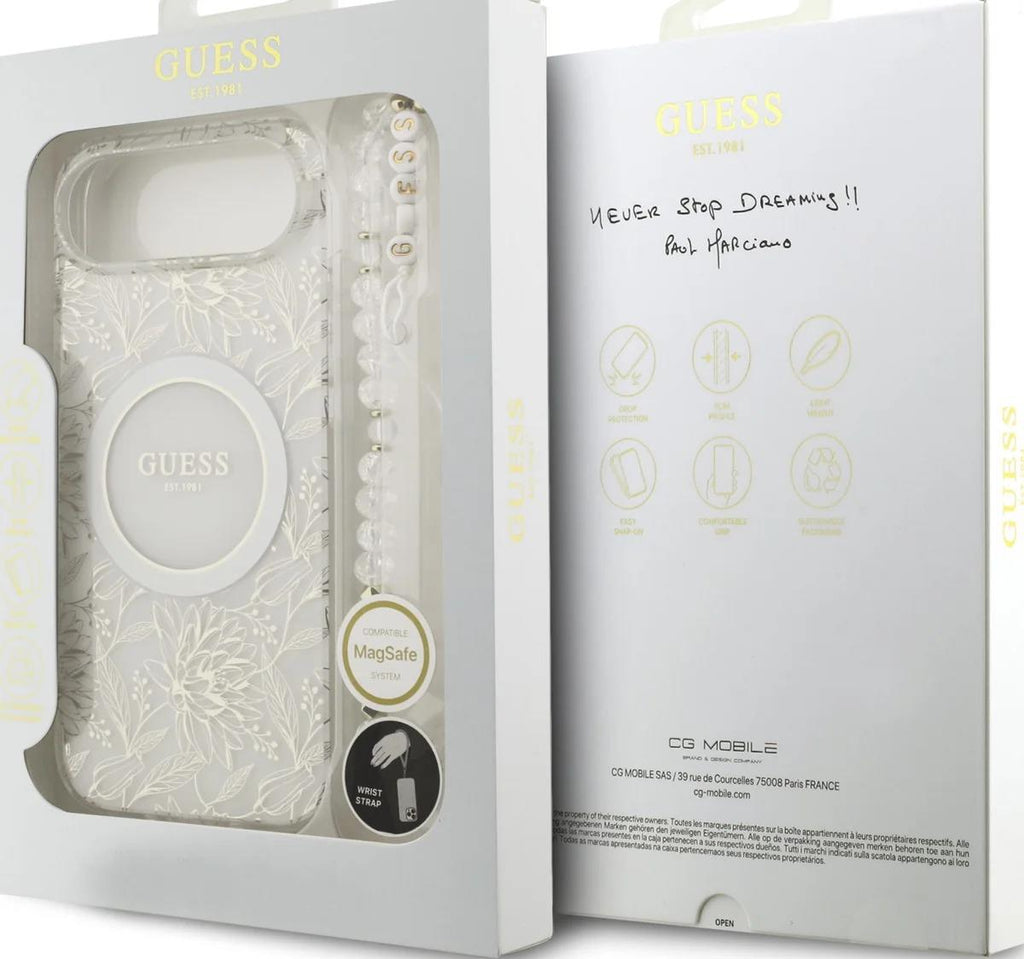 1 × Guess IML Flowers Allover Strap Case with MagSafe for iPhone 17 Air 6.5" – White