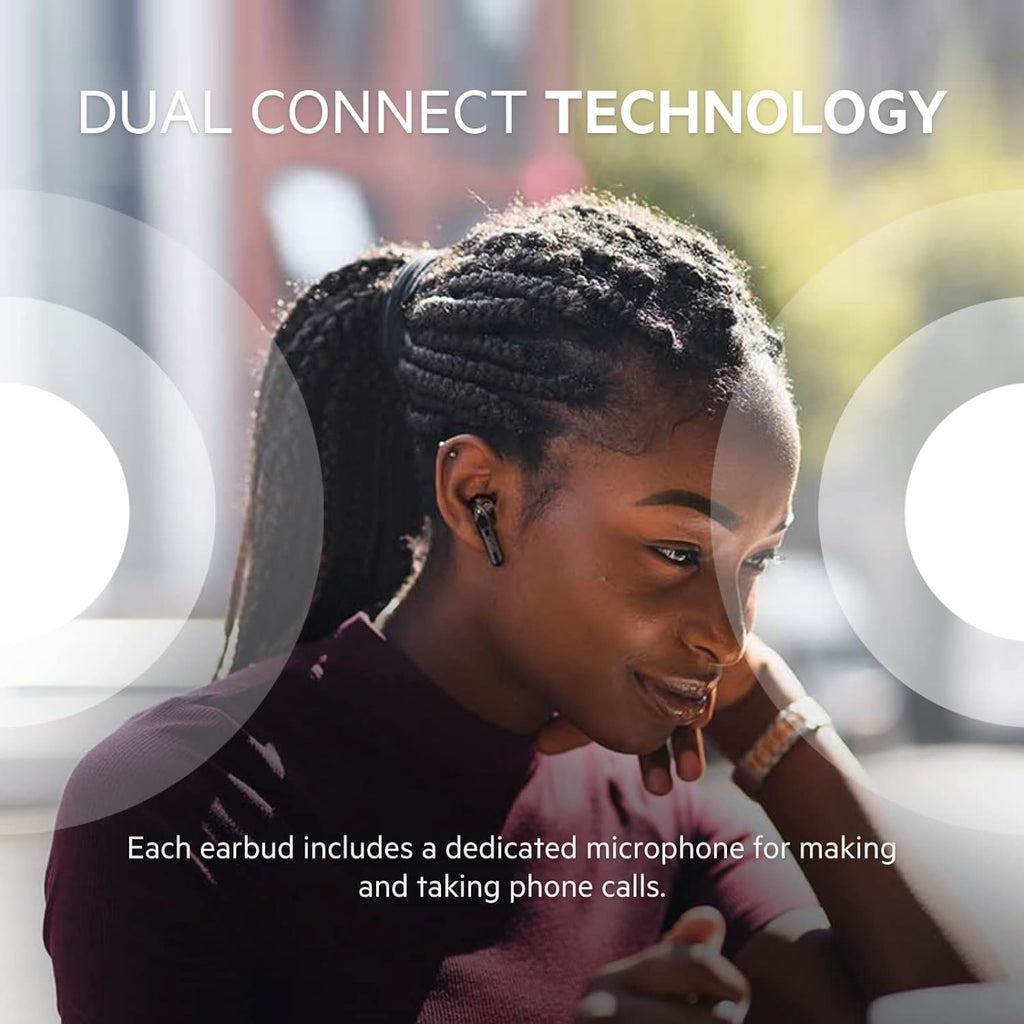 - Dual Connect gives you total freedom to use a single earbud for calls and music. Each earbud includes a built-in microphone for making phone calls while allowing the second earbud to charge in the case.