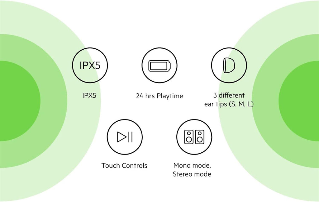 Special features: Touch controls, IPX5 Rated, 24 hrs Playtime