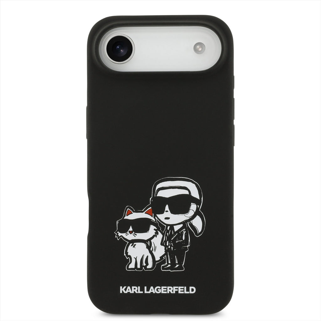Karl Lagerfeld Liquid Silicone Karl and Choupette Sketch Case with MagSafe for iPhone 17 Air 6.5" Black - KLHMP17MSKCGRGOK