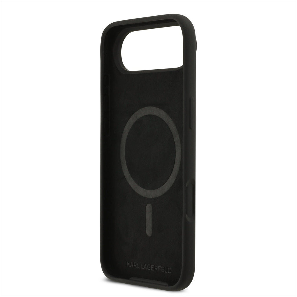 Elevate your iPhone 17 Air with this official Karl Lagerfeld Liquid Silicone Case. This exclusive accessory is a statement of style, featuring a subtle yet playful sketch of the iconic designer Karl Lagerfeld and his beloved cat, Choupette. Crafted from premium liquid silicone, the case offers a soft-touch, smooth finish that feels great in your hand while providing durable protection against daily wear and tear. With a powerful built-in magnetic ring, the case is fully compatible with MagSafe, ensuring a secure connection to all your accessories.