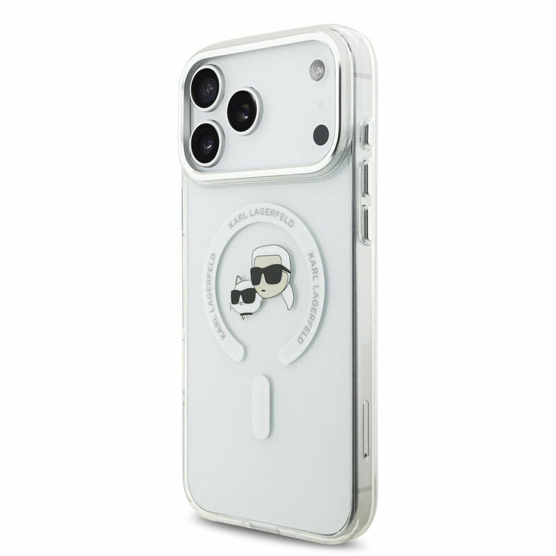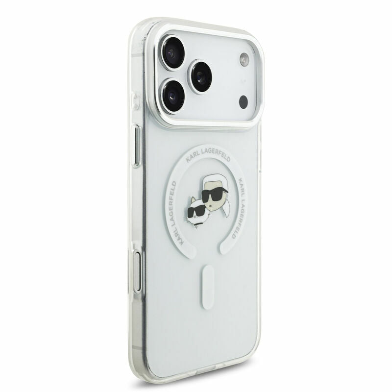 • 1x Karl Lagerfeld IML Karl & Choupette Head Metal Frame Case with MagSafe for iPhone 17 Pro Max (Clear)