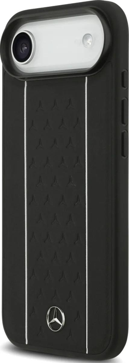 Mercedes Leather Star Pattern Stripes Case with MagSafe for iPhone 17 Air 6.5" Black - MEHMP17M25RPSLKH