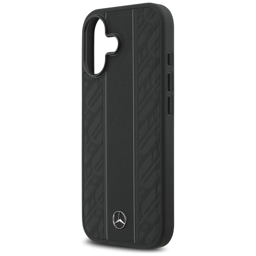 Mercedes Leather Laurel Leaves Stripes Case with MagSafe for iPhone 17 6.3" Black - MEHMP17S25RLDLKH