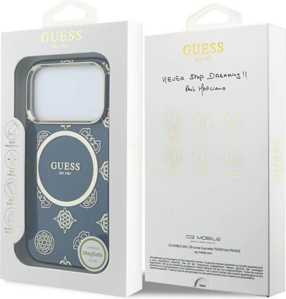 1 × Guess IML Peony Dot MagSafe Case for iPhone 17 Pro – Blue