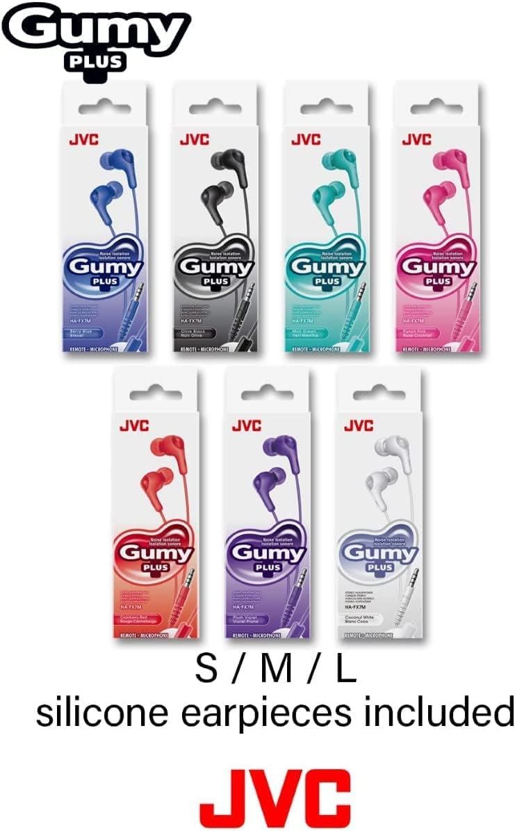 - JVC Gumy Plus In-Ear Headphones with Remote and Microphone, 1m Colorful Cable with Slim Connector Compatible with iPhone, Punch Pink